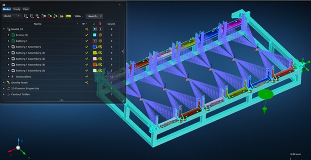全面整合的結構分析流程,自動偵測需要的求解器設定,前/後處理功能與求解器皆在同一個介面下操作,支援靜態、正交模態、動態、挫曲分析。